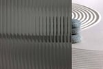 SX-1235 Reeded Glass Twilight Black adhesive film simulates real reeded glass. Bands are 1/2″ wide and the reeded band direction goes down the length of the roll. The reeded band height is determined by the length of the material ordered. يحتوي هذا الفيلم على نمط أفقي متأصل ودقيق للغاية يتكرر كل 12 ″/300 مم.