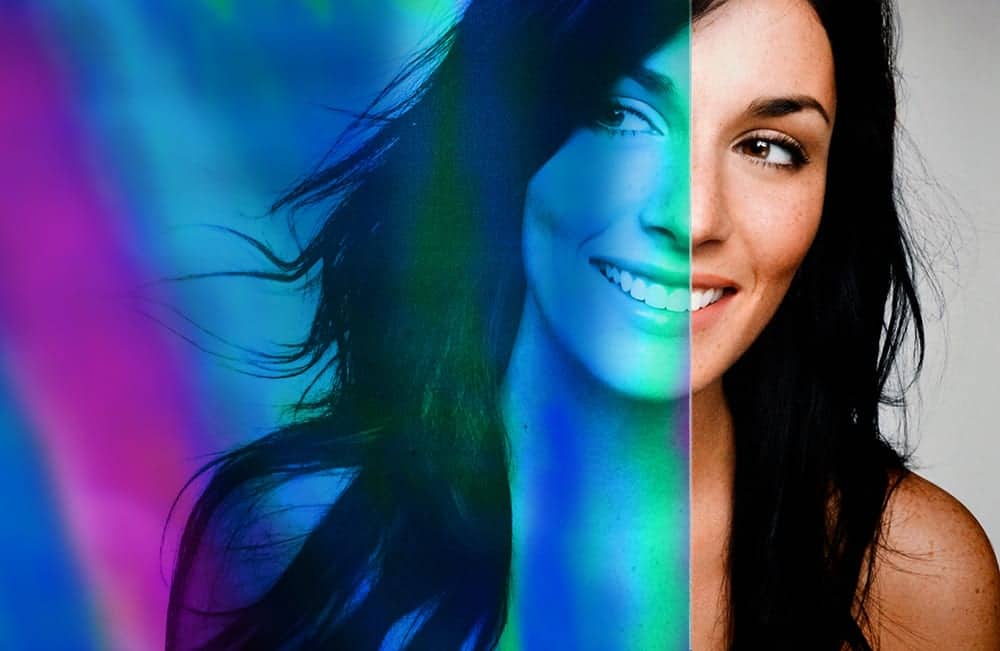 This Dichroic films’ colours shift as the viewing angle changes. The colours when viewed with light behind (Daytime looking from inside to outside) are Magenta, Purple, Blue and Teal. When viewed with less light behind the film (Daytime from outside) the colours are Copper/Gold.