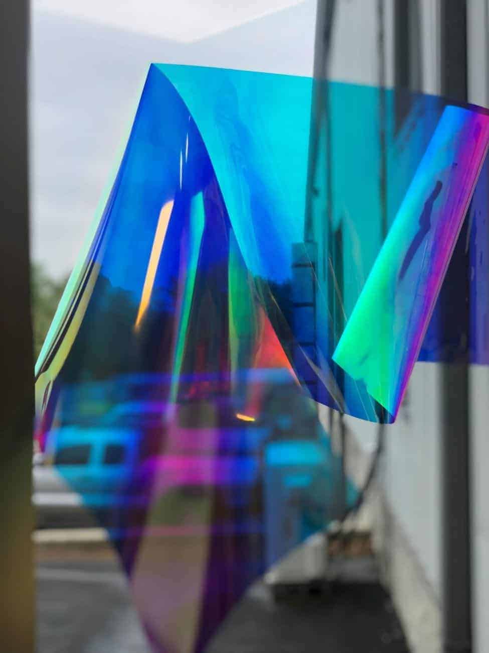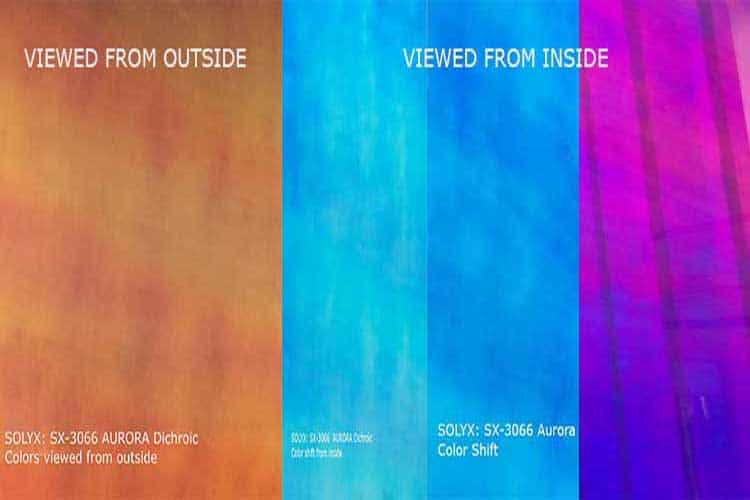 SX-3066 Aurora dichroic polyester film is designed for application to interior glass surfaces. This film is made of multi layered durable Polyester for color shifting special effects.