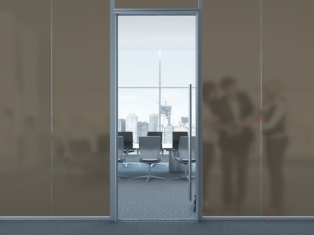 SX-1305 Bronze Frost is a clear translucent, high grade embossed vinyl film that simulates sand blasted glass. Ideal for obscuring direct visibility while allowing excellent light transmission.
