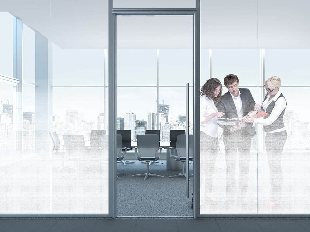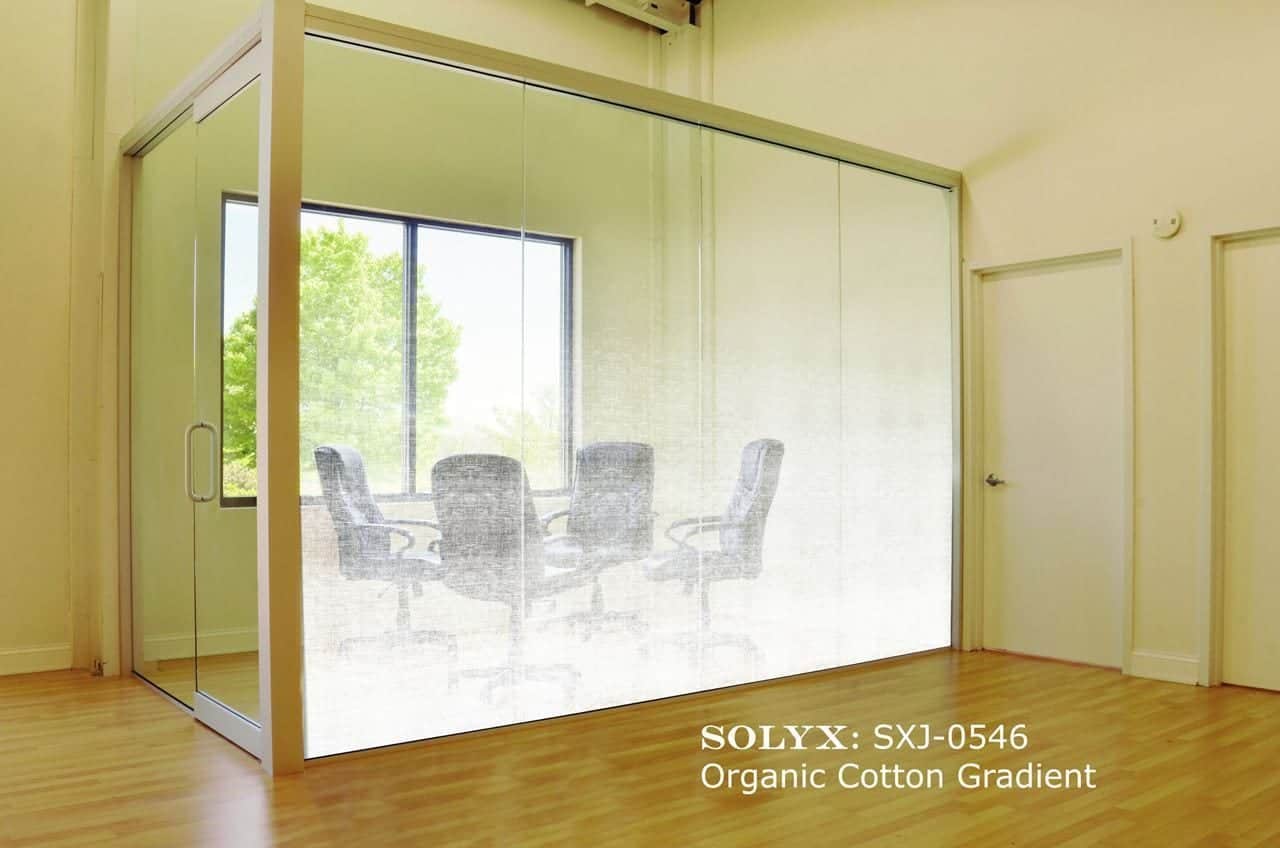 SXJ-0546 Organic Cotton Gradient. Simulates muslin or cotton fabric that fades from semi-transparent to clear. An elegant film that provides privacy while still allowing excellent light transmission. The design can be extended at the bottom of this film by using SXJ-0567 Einfarbig Weiß.
