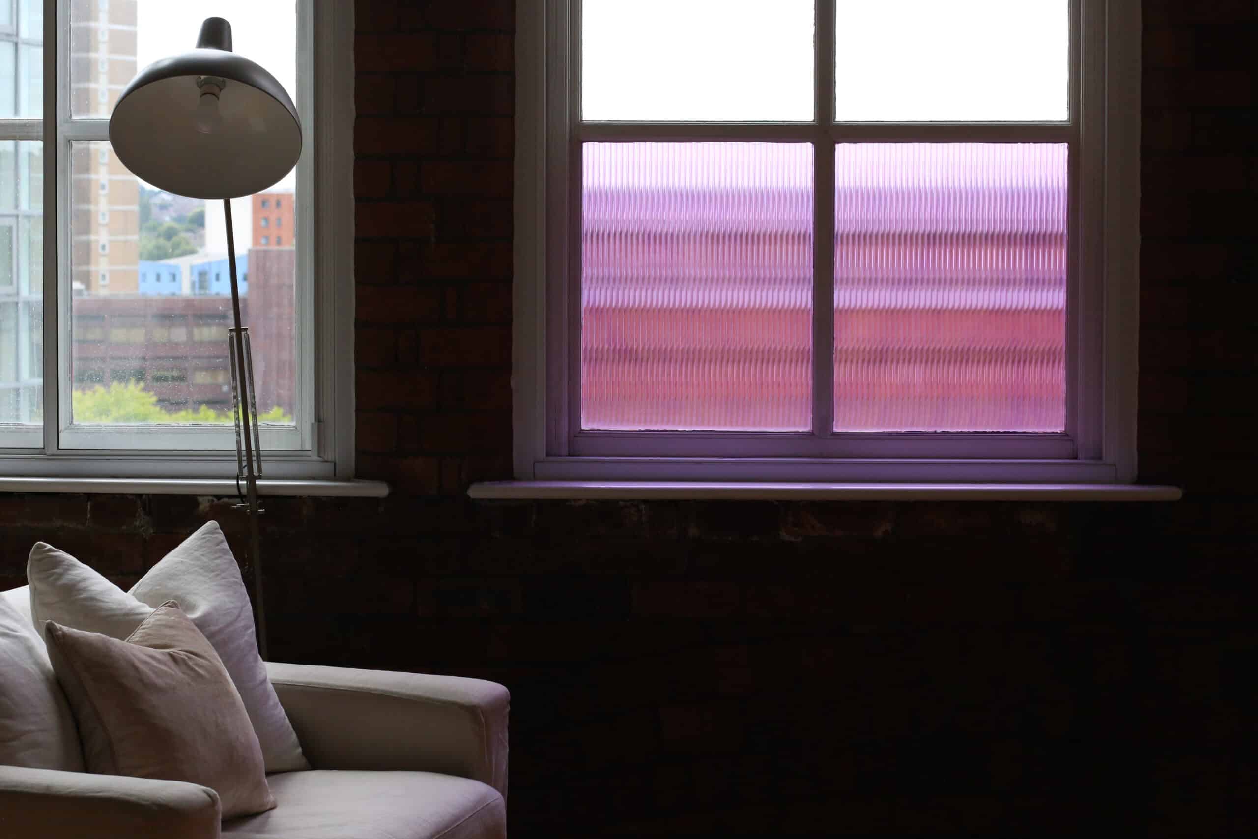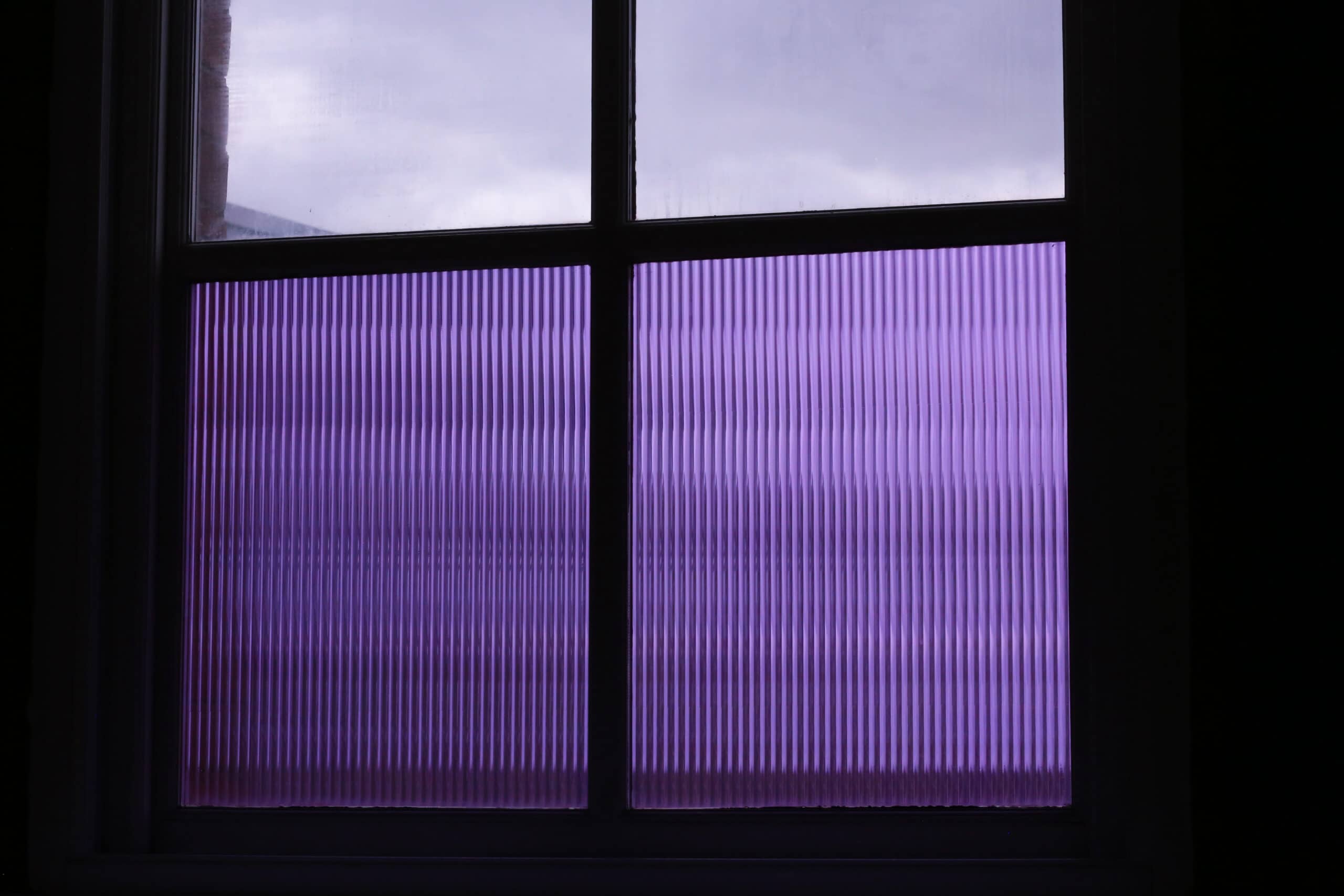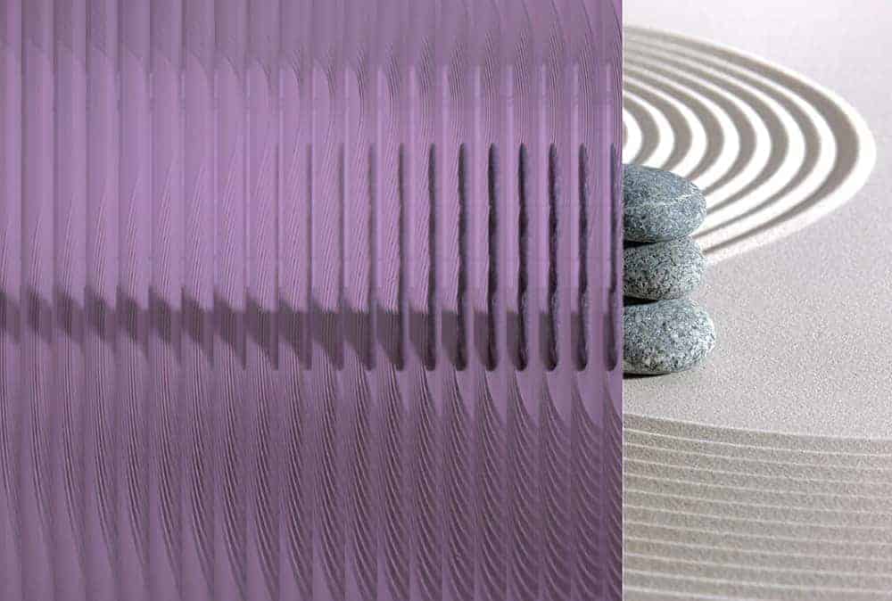 SX-1276 Reeded Glass Fliederfarbener Klebefilm simuliert echtes Schilfrohrglas. Die Bänder sind 1/2″ breit und die Richtung des Schilfbandes geht über die gesamte Länge der Rolle. Die Höhe des Schilfbandes wird durch die Länge des bestellten Materials bestimmt. Dieser Film hat eine horizontale, inhärente, sehr feine Musterwiederholung alle 12″/300mm.