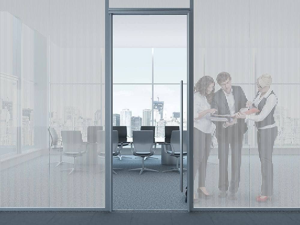 SX-4801 Thin Grey Lines. Translucent 4.76mm wide lines with 1.58mm wide clear spacing. Vertical lines running the length of the roll. Made of durable polyester. Thickness is 2 mil. Supplied with a silicone liner, which protects the clear, pressure-sensitive adhesive, and is applied using the same tools and techniques for window films.