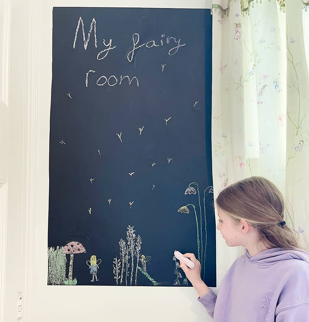 Schwarze Vinylfolie mit einer kreideähnlichen Oberfläche. Hervorragend geeignet für Wände in Küchen, Esszimmern, Wohnzimmern, Kinderzimmern, Klassenzimmern, Büros und überall dort, wo eine dauerhafte Schreibfläche benötigt wird, ohne die Wände zu beschädigen. Keine schmutzige Kreidetafelfarbe mehr! Leicht anzubringen und zu entfernen!
