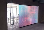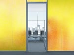Una lámina de vidrio dicroico brillante y hermosa que cambia a través de un arco iris de colores con un cambio de luz o movimiento. Una excelente lámina de privacidad que oculta la visibilidad directa y permite una excelente transmisión de la luz. Soporte adhesivo.