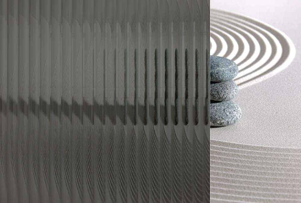 SX-1235 Reeded Glass Twilight Black adhesive film simulates real reeded glass. Bands are 1/2″ wide and the reeded band direction goes down the length of the roll. The reeded band height is determined by the length of the material ordered. Questa pellicola presenta una ripetizione orizzontale, intrinseca e molto fine del motivo ogni 12″/300 mm.