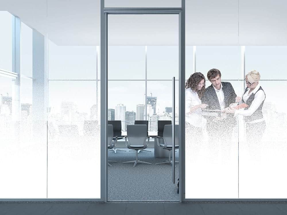 SXJ-0590 Point Gradient Dot window film graduates in opacity from the bottom of the film to the top. This film may also be installed with the opaque area at the top of the glass fading to clear towards the centre.