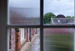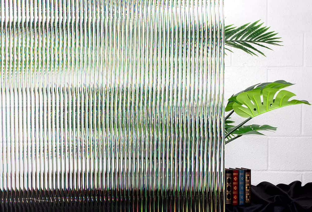 SX-1262 Reeded Glass plakfolie simuleert echt glas met riet. De banden zijn 1/4″ breed en de richting van de rietband loopt verticaal over de lengte van de rol. De rietbandhoogte wordt bepaald door de lengte van het bestelde materiaal.