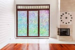 SXD-4200 A shimmering and beautiful, dichroic cut glass film that shifts through a rainbow of colors from a change in light or movement. An excellent privacy film obscuring direct visibility and allowing excellent light transmission. Adhesive backed.
