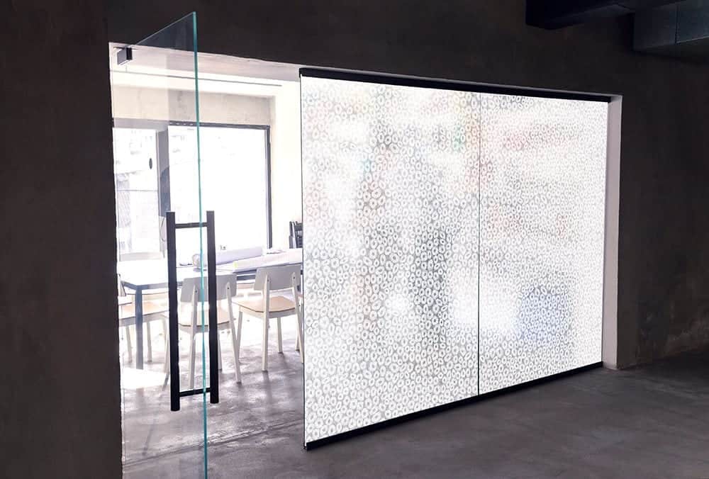 SX-5010 Sugar is a translucent film with fiberglass mesh circles and a rice paper background. This film is recommended for application to interior and exterior glass (inside surface). Made of durable vinyl with a decorative design. Supplied with a silicone liner, which protects the clear, pressure-sensitive adhesive, and applied using the same tools and techniques for window films.