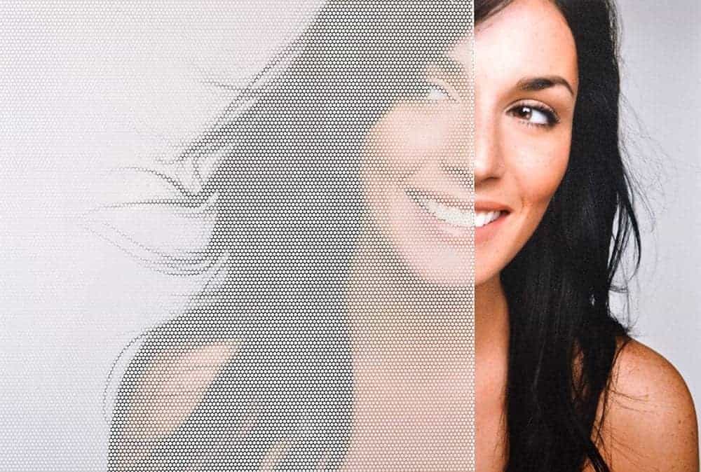 SX-2011 Vit mikropunkt. Små 1/16" vita hexagonalt formade mikropunkter på klar polyesterfilm. Idealisk för att dölja direkt synlighet och ger utmärkt ljusgenomsläpp.