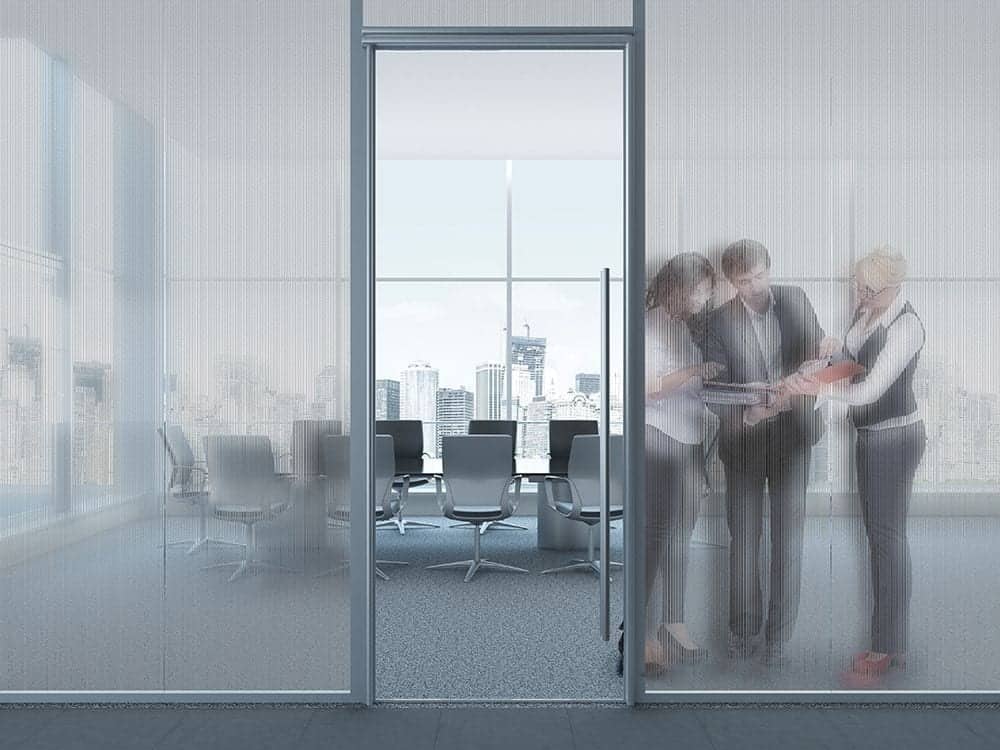 SX-316132 Frosted Stripes fönsterfilm. Bra film för subtil integritet. 3/16″ ränder med 1/32″ fritt utrymme. Ränderna löper vertikalt ner längs rullens längd.